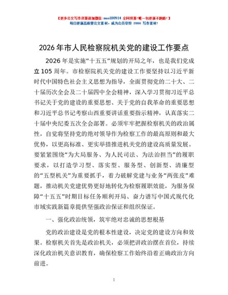 / 2026年市人民检察院机关党的建设工作要点