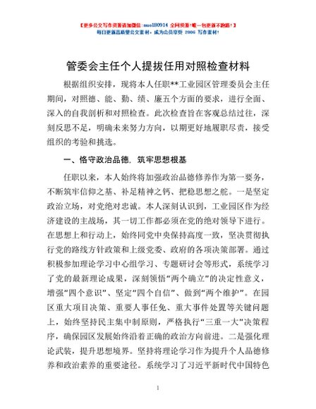 / 管委会主任个人提拔任用对照检查材料