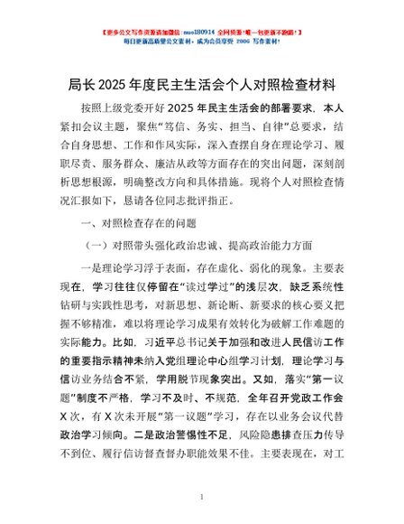 / 局长2025年度民主生活会个人对照检查材料
