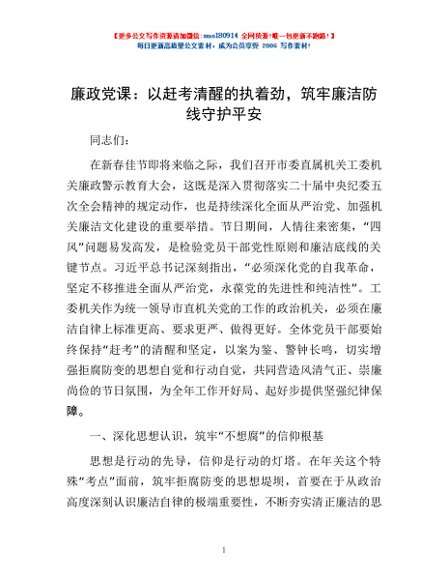 廉政党课:以赶考清醒的执着劲,筑牢廉洁防线守护平安