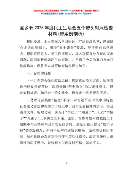 / 副乡长2025年度民主生活会五个带头对照检查材料(带案例剖析)