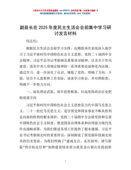 / 副县长在2025年度民主生活会会前集中学习研讨发言材料