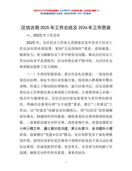 / 区信访局2025年工作总结及2026年工作思路