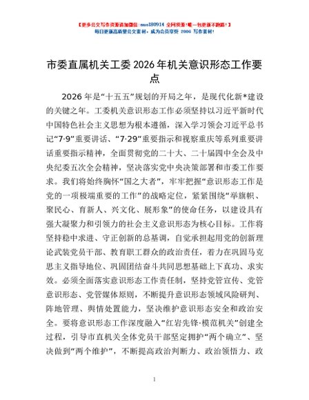 / 市委直属机关工委2026年机关意识形态工作要点