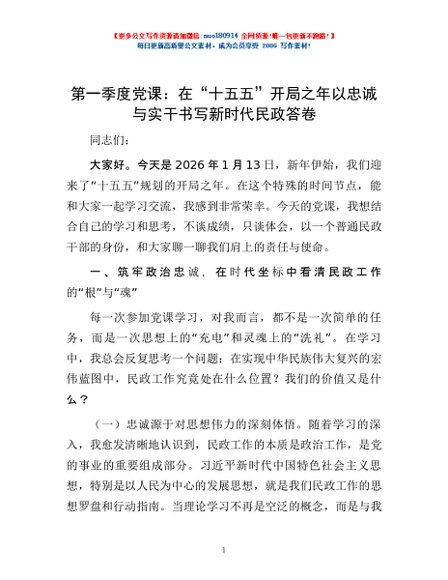 / 第一季度党课:在“十五五”开局之年 以忠诚与实干书写新时代民政答卷