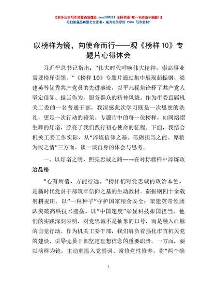 / 以榜样为镜,向使命而行——观《榜样10》专题片心得体会