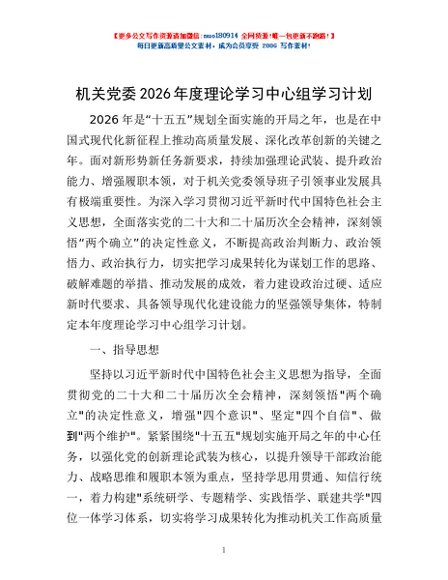 / 机关党委2026年度理论学习中心组学习计划