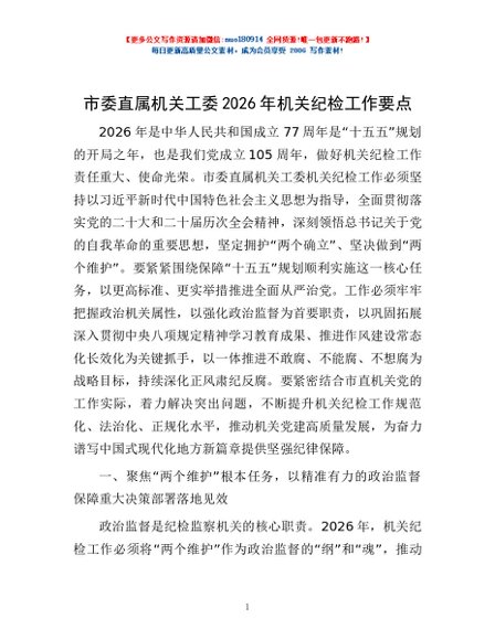 / 市委直属机关工委2026年机关纪检工作要点