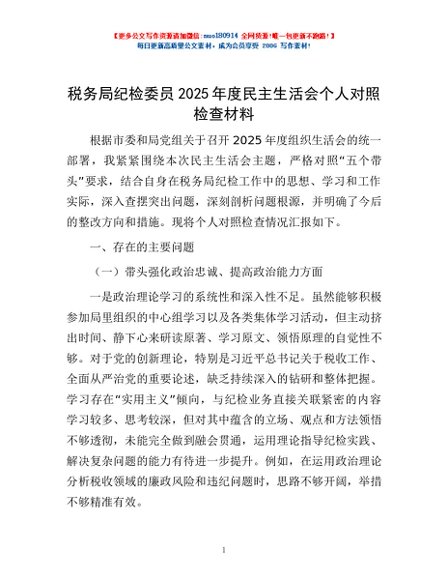 / 税务局纪检委员2025年度民主生活会个人对照检查材料