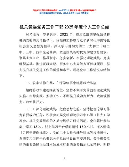 / 机关党委党务工作干部2025年度个人工作总结