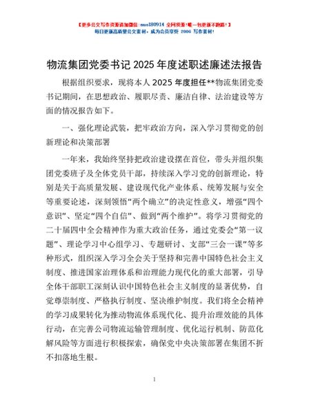 / 物流集团党委书记2025年度述职述廉述法报告