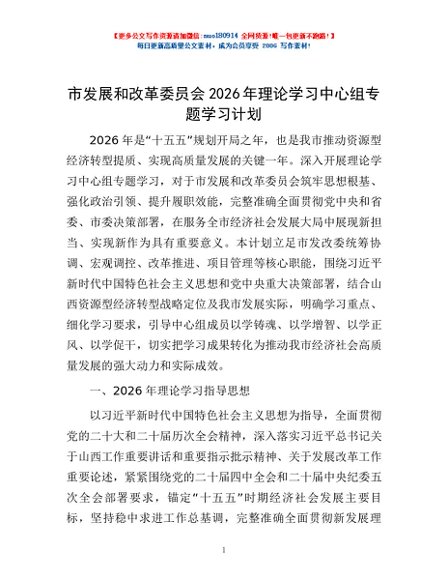 / 市发展和改革委员会2026年理论学习中心组专题学习计划