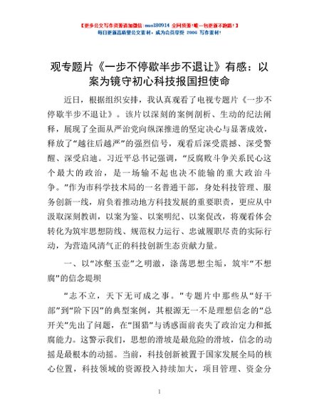 / 观专题片《一步不停歇半步不退让》有感:以案为镜守初心科技报国担使命