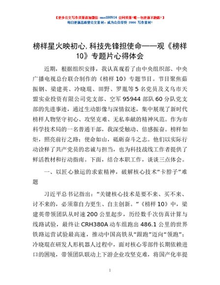 / 榜样星火映初心,科技先锋担使命——观《榜样10》专题片心得体会