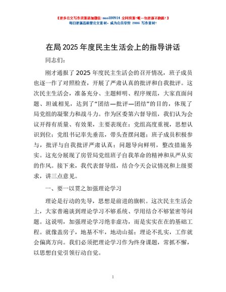 / 在局2025年度民主生活会上的指导讲话