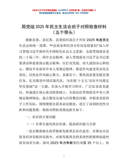 / 局党组2025年民主生活会班子对照检查材料(五个带头)