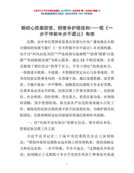 / 砺初心拒腐防变,担使命护稳促和——观《一步不停歇半步不退让》有感