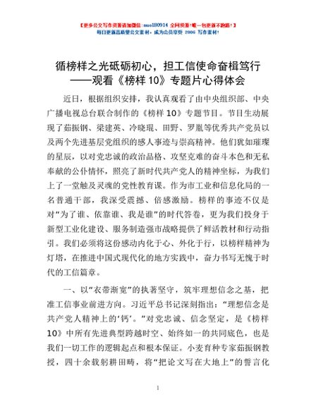 / 循榜样之光砥砺初心,担工信使命奋楫笃行——观看《榜样10》专题片心得体会
