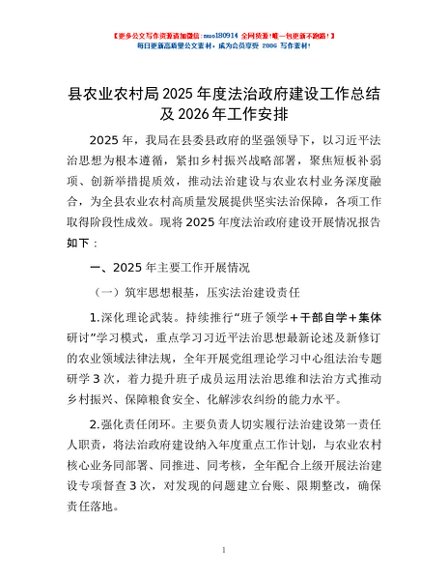 / 县农业农村局2025年度法治政府建设工作总结及2026年工作安排