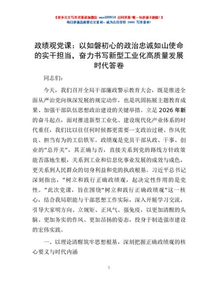 政绩观党课:以如磐初心的政治忠诚如山使命的实干担当,奋力书写新型工业化高质量发展时代答卷