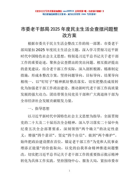 / 市委老干部局2025年度民主生活会查摆问题整改方案