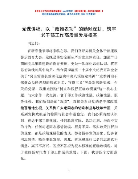 / 党课讲稿:以“政如农功”的勤勉深耕,筑牢老干部工作高质量发展根基
