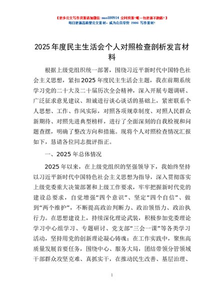 / 2025年度民主生活会个人对照检查剖析发言材料