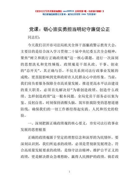 / 党课:砺心崇实勇担当 明纪守廉促公正