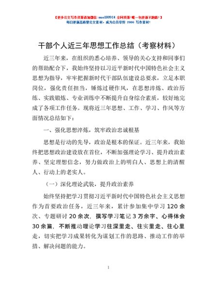 / 干部个人近三年思想工作总结(考察材料)