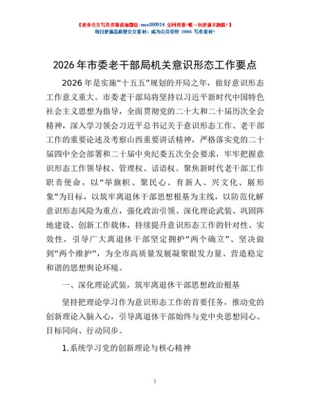 / 2026年市委老干部局机关意识形态工作要点