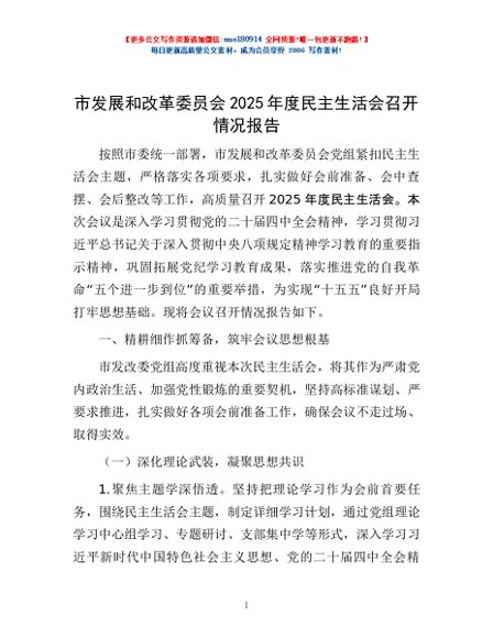 / 市发展和改革委员会2025年度民主生活会召开情况报告