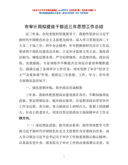 / 市审计局拟提拔干部近三年思想工作总结