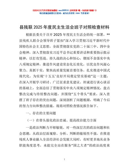 / 县残联2025年度民主生活会班子对照检查材料