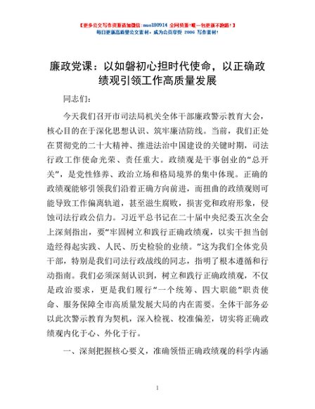 / 廉政党课:以如磐初心担时代使命,以正确政绩观引领工作高质量发展