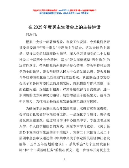 2025年度民主生活会暨巡察整改民主生活会个人发言提纲