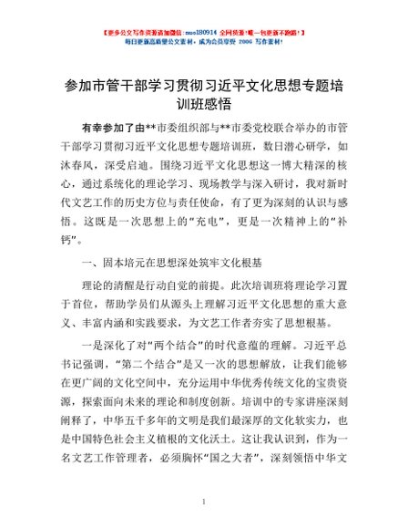/ 参加市管干部学习贯彻习近平文化思想专题培训班感悟