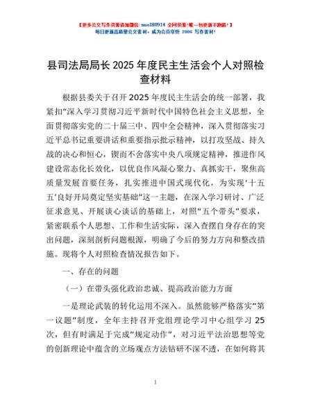 / 县司法局局长2025年度民主生活会个人对照检查材料