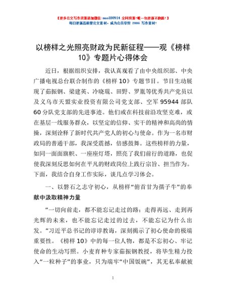 以榜样之光照亮财政为民新征程——观《榜样10》专题片心得体会