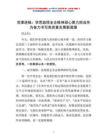 / 党课讲稿:学思践悟全会精神 凝心聚力担当作为 奋力书写高质量发展新篇章