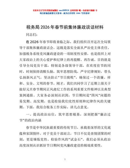 / 税务局2026年春节前集体廉政谈话材料