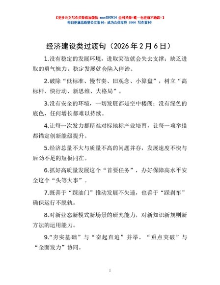 / 经济建设类过渡句(2026年2月6日)
