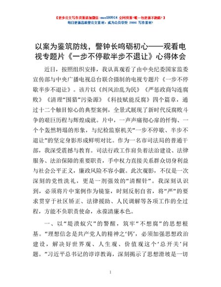 / 以案为鉴筑防线,警钟长鸣砺初心——观看电视专题片《一步不停歇半步不退让》心得体会
