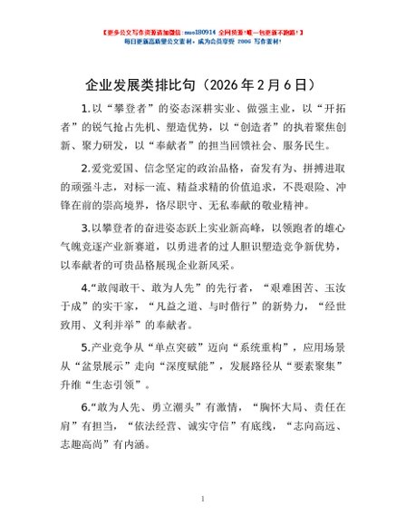 / 企业发展类 排比句(2026年2月6日)