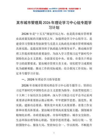 / 某市城市管理局2026年理论学习中心组专题学习计划