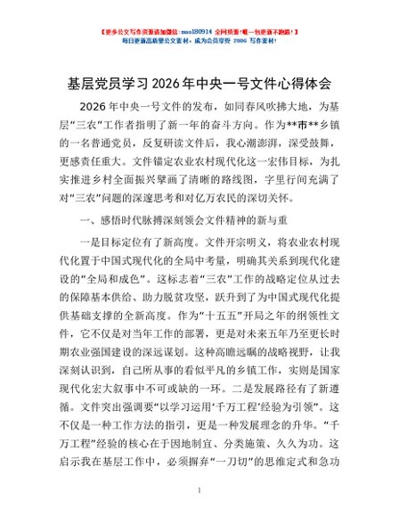 / 基层党员学习2026年中央一号文件心得体会