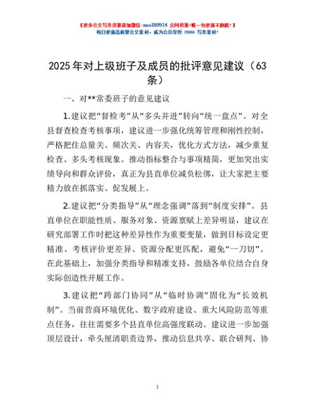 / 2025年对上级班子及成员的批评意见建议(63条)