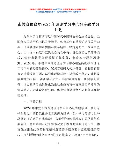 / 市教育体育局2026年理论学习中心组专题学习计划