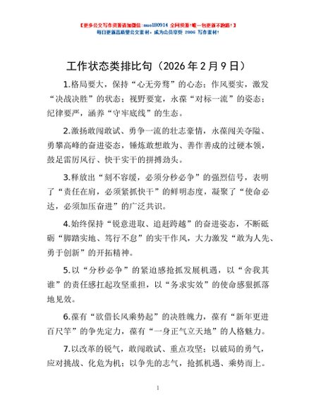 / 工作状态类排比句(2026年2月9日)