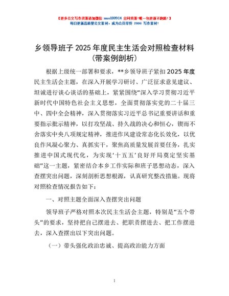 / 乡领导班子2025年度民主生活会对照检查材料(带案例剖析)