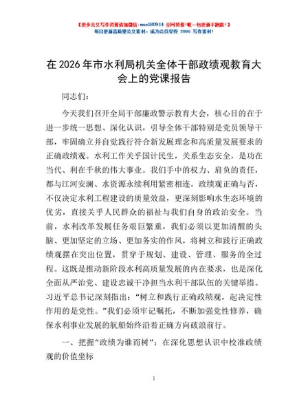 / 在2026年市水利局机关全体干部政绩观教育大会上的党课报告